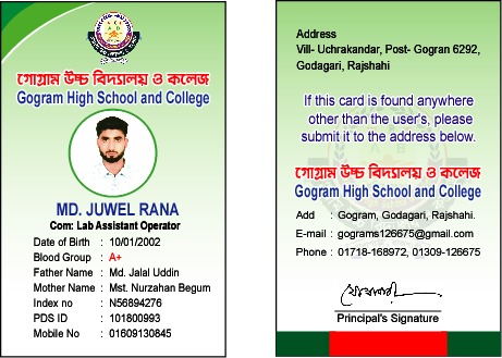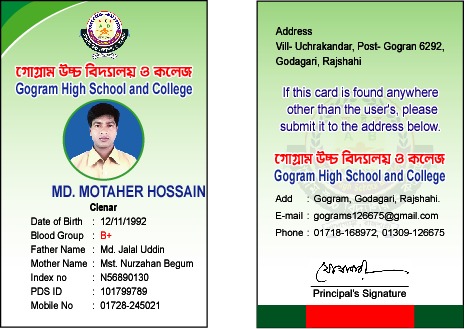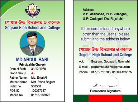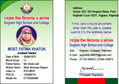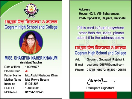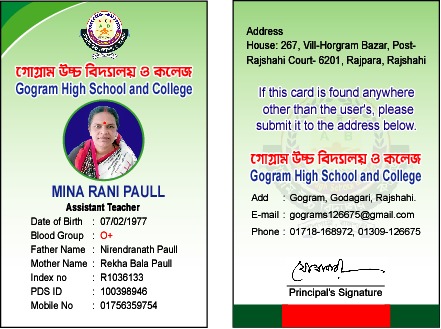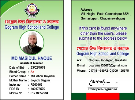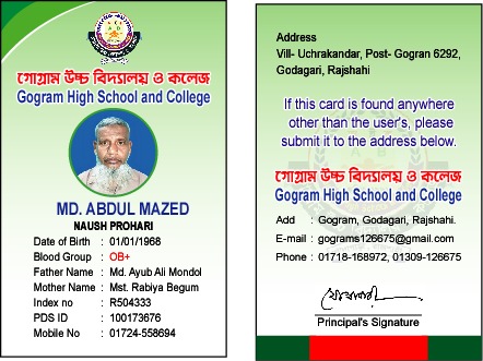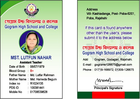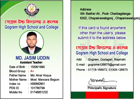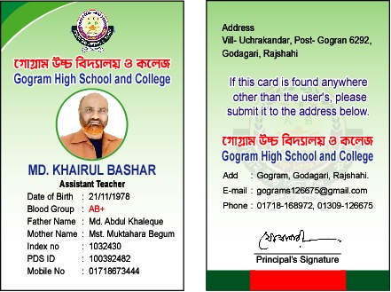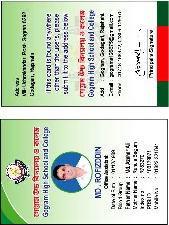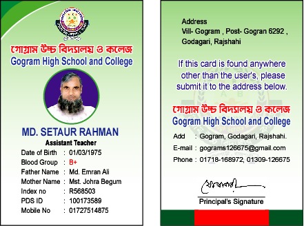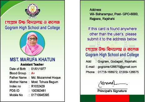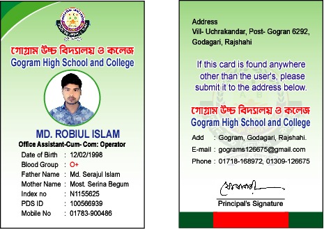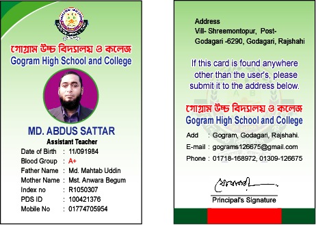 শিক্ষক ও কর্মচারী প্রাতিষ্ঠানিক আইডি কার্ড
